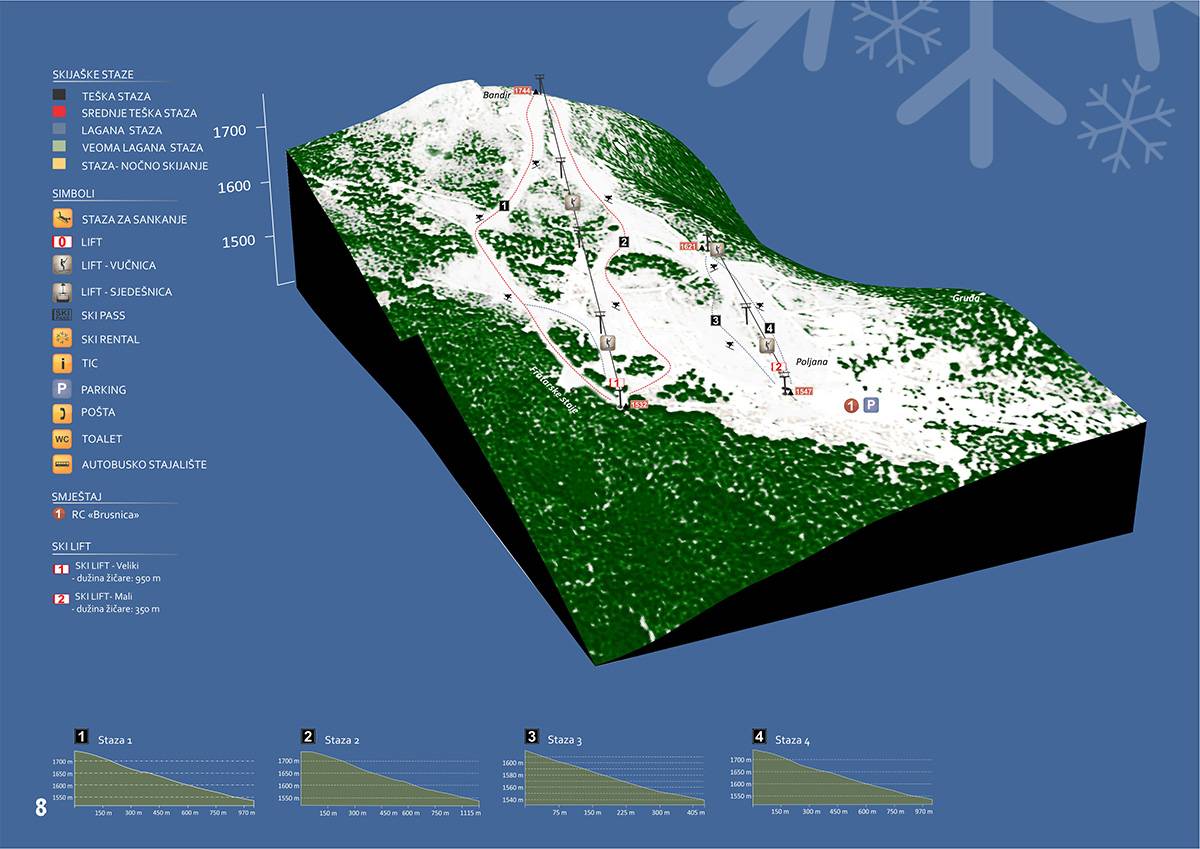 Plan des pistes Brusnica Saison 2025/2026