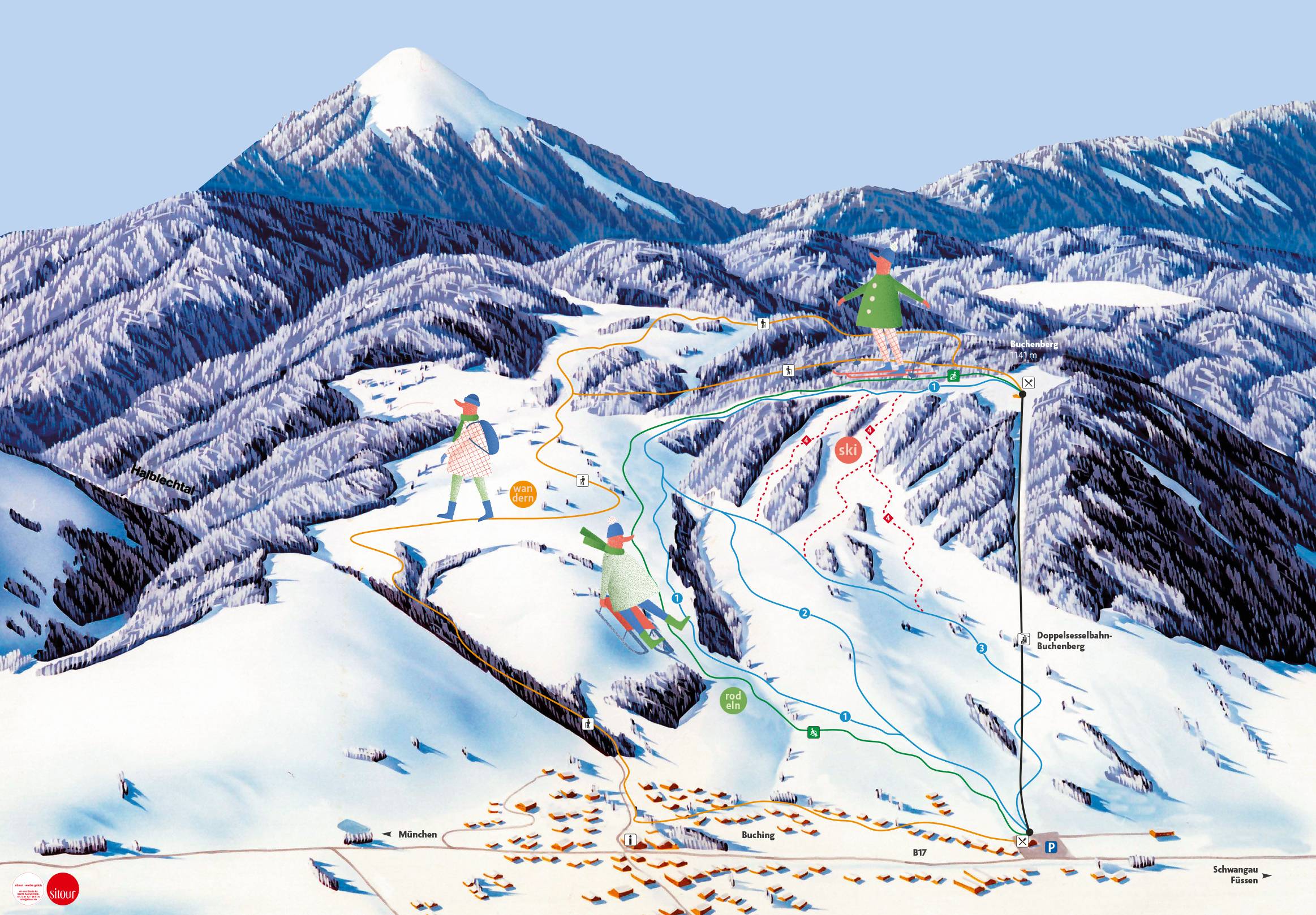 Buching (0,4 km), Halblech (2,3 km), Schwangau (7 km), Füssen (10 km) Communes près du domaine skiable