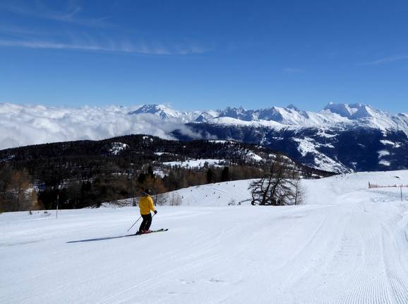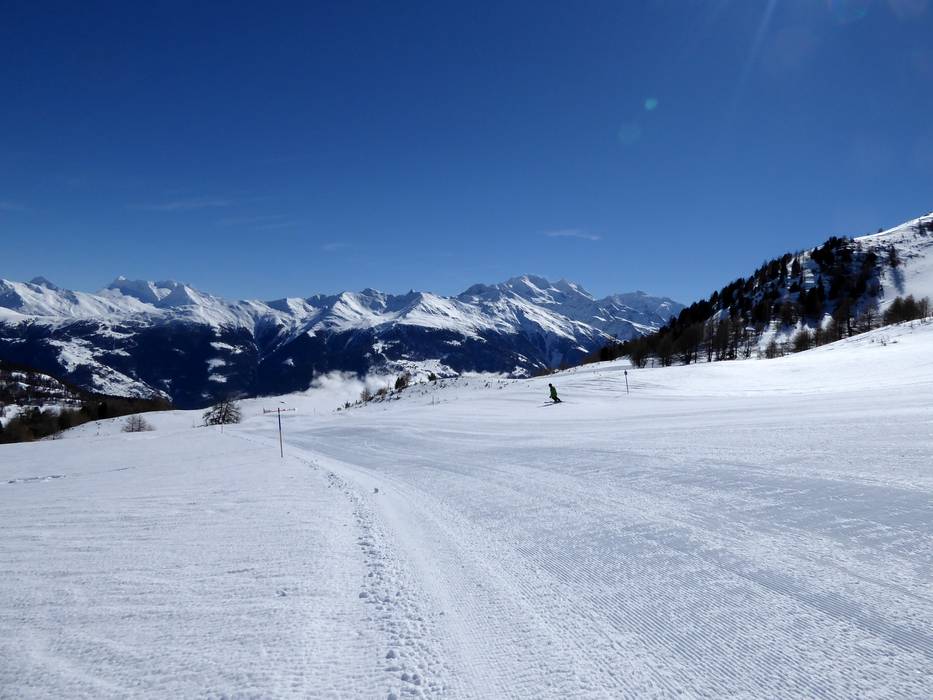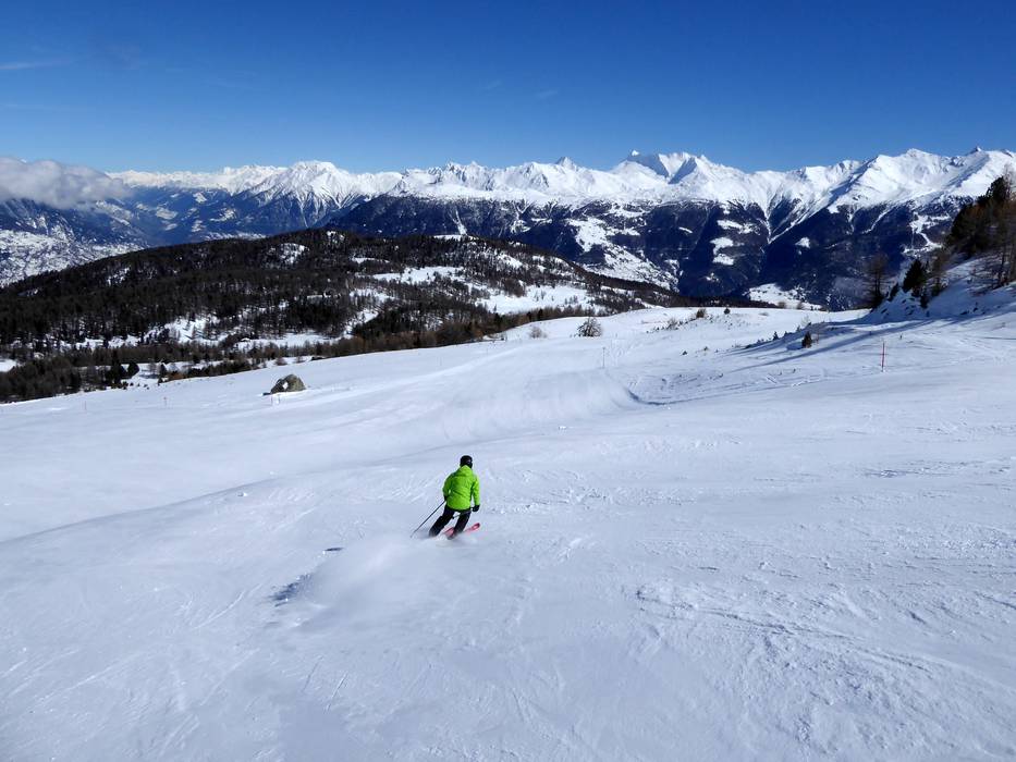 Le domaine skiable de Bürchen/Törbel avec la Moosalp est situé sur un plateau surplombant la vallée du Rhône. Ce domaine hivernal à taille humaine est entouré par le paysage montagneux époustouflant du Valais. À la Moosalp, une attention particulière est portée aux familles. Les