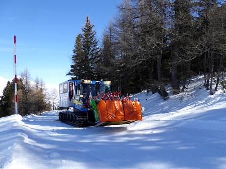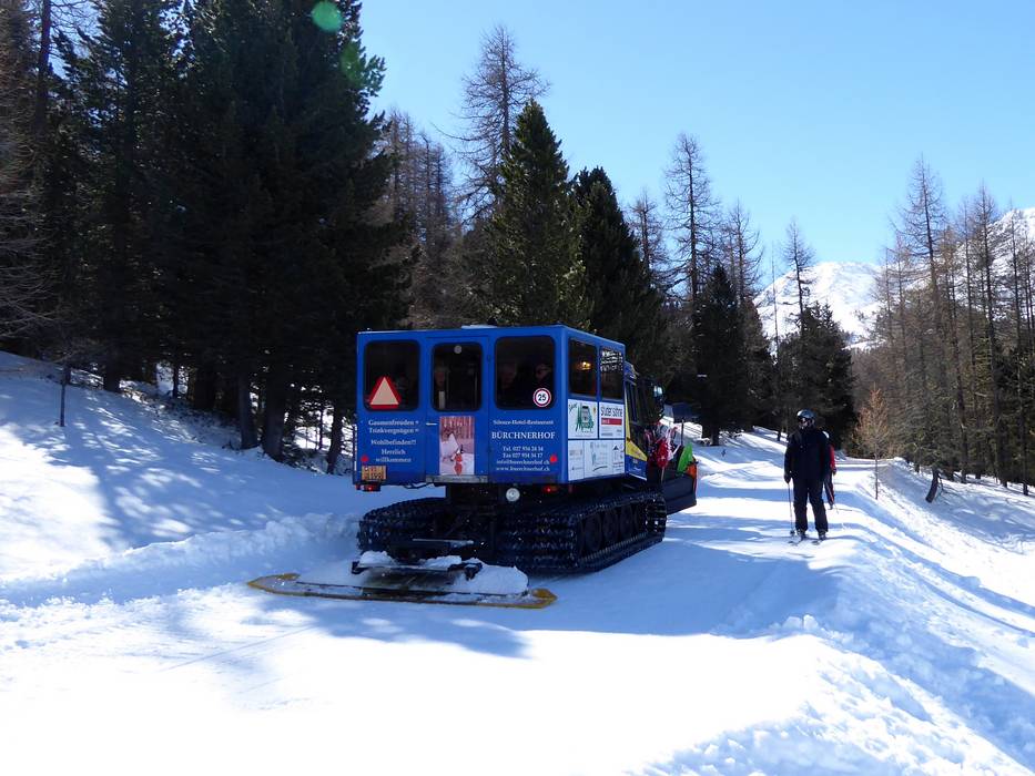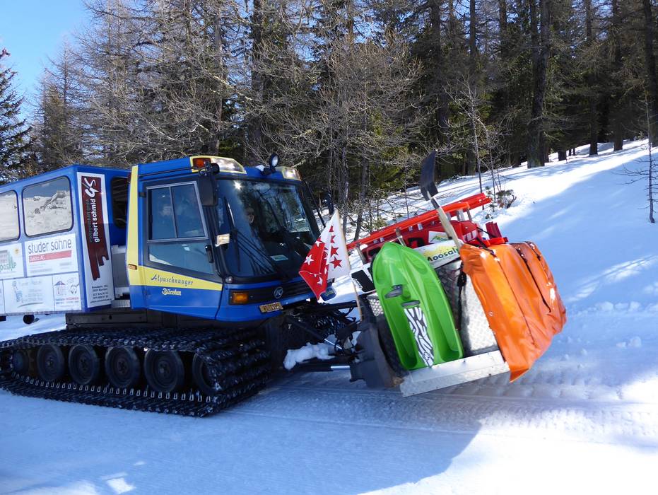 L’Alpuschnaager est une dameuse équipée d’une cabine passagers pouvant accueillir jusqu’à 20 personnes. Toute la famille peut ainsi se faire emmener de Bürchen vers la Bürchner- ou la Moosalp. Trois excellents restaurants de montagne vous y attendent. Et le meilleur : le conducteur a également des luges avec lui, pour la descente de plus de cinq kilomètres jusqu’au retour.