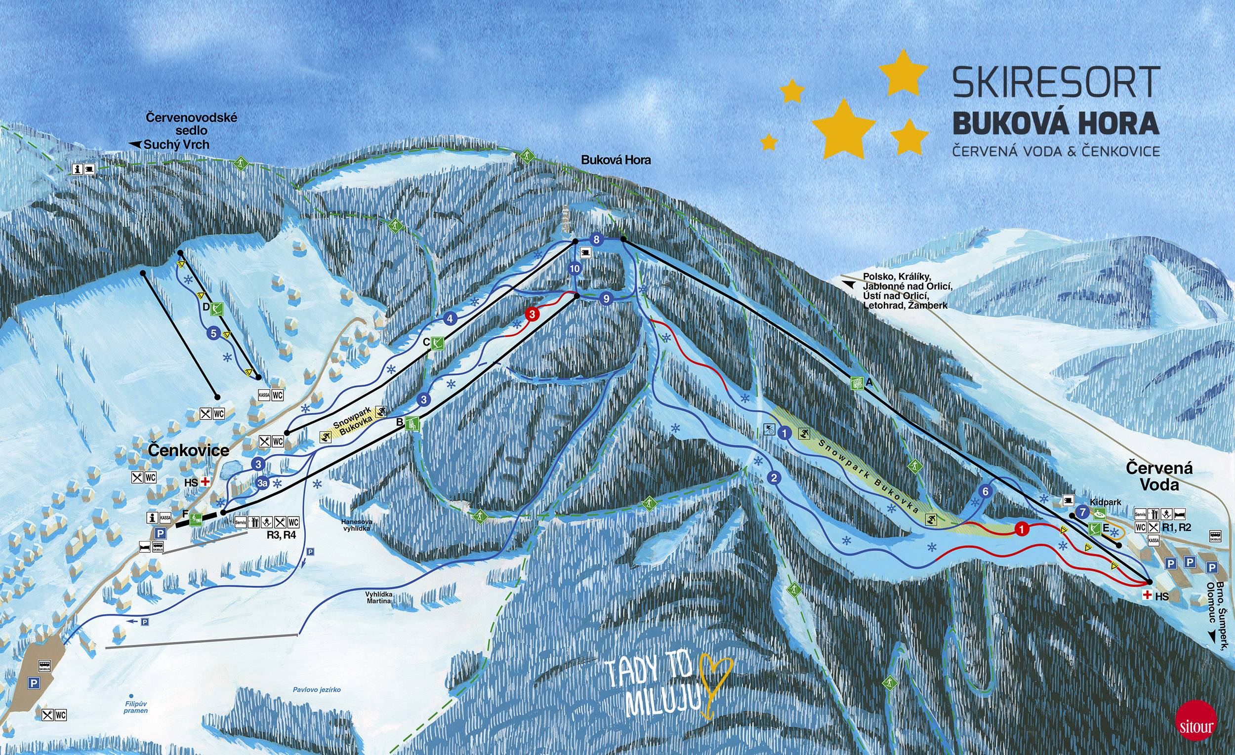 Plan des pistes Buková hora – Čenkovice/Červená Voda Saison 2025/2026