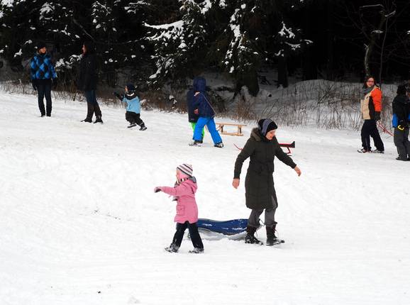 La partie droite de la pente, vue depuis la cabane de ski, est ouverte à la luge dans sa partie inférieure.