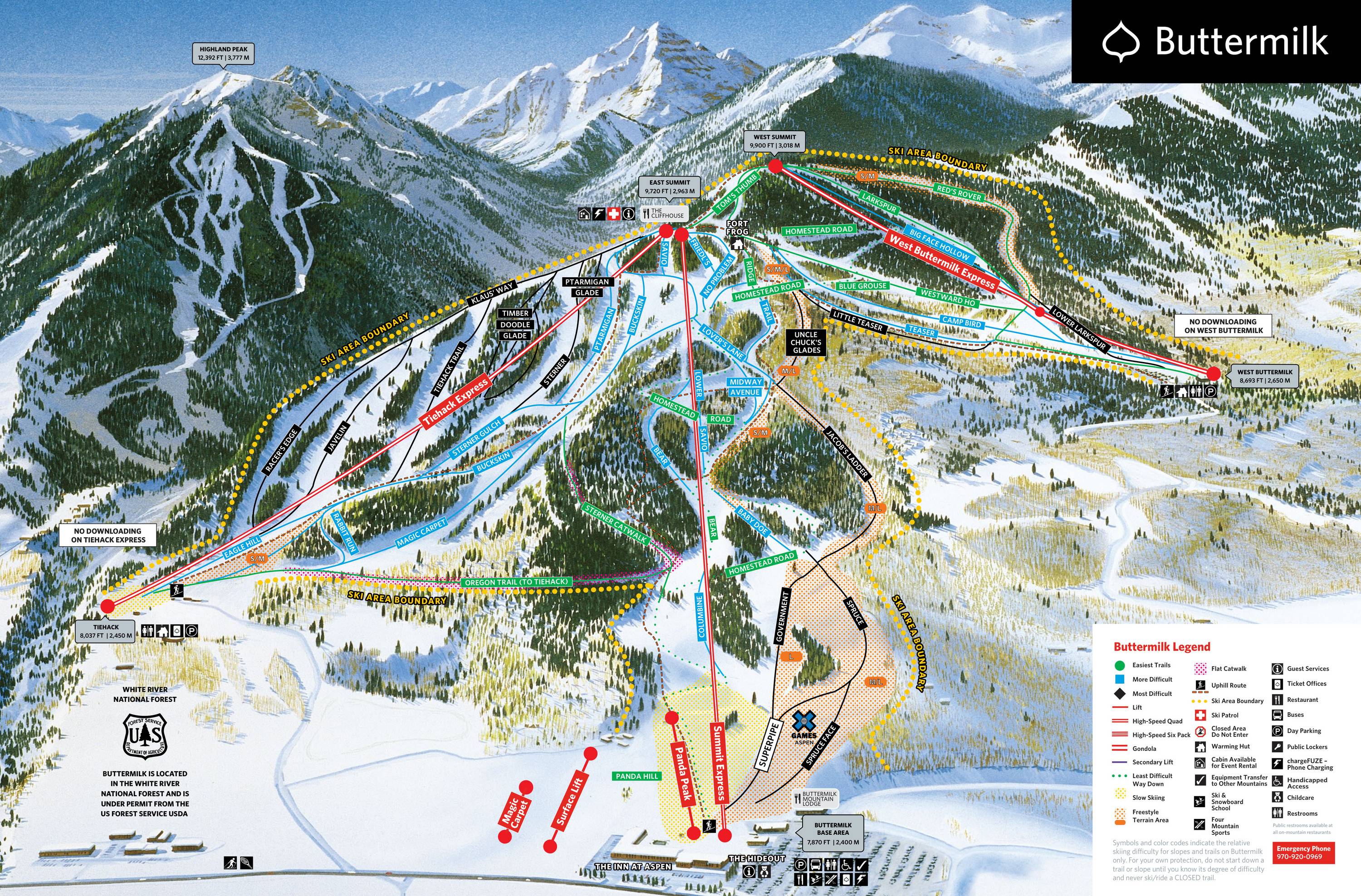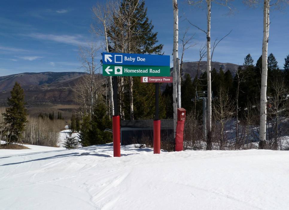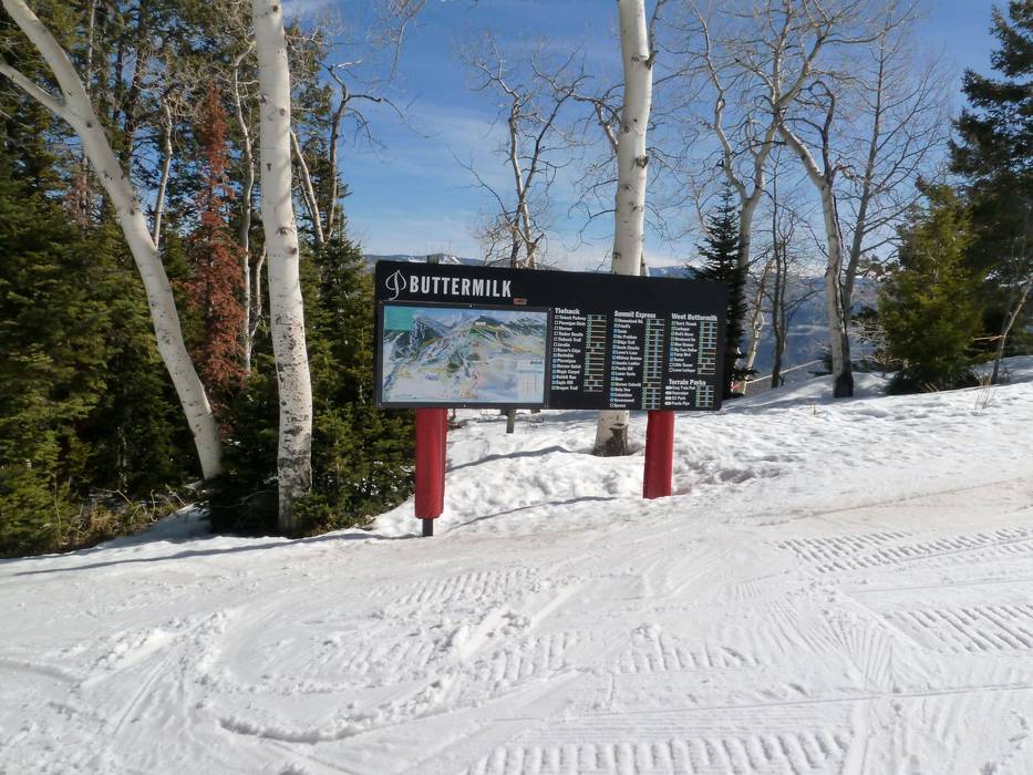 Indications de directions (plans, panneaux informatifs, signalisation) et sécurité sur le domaine skiable Buttermilk Mountain