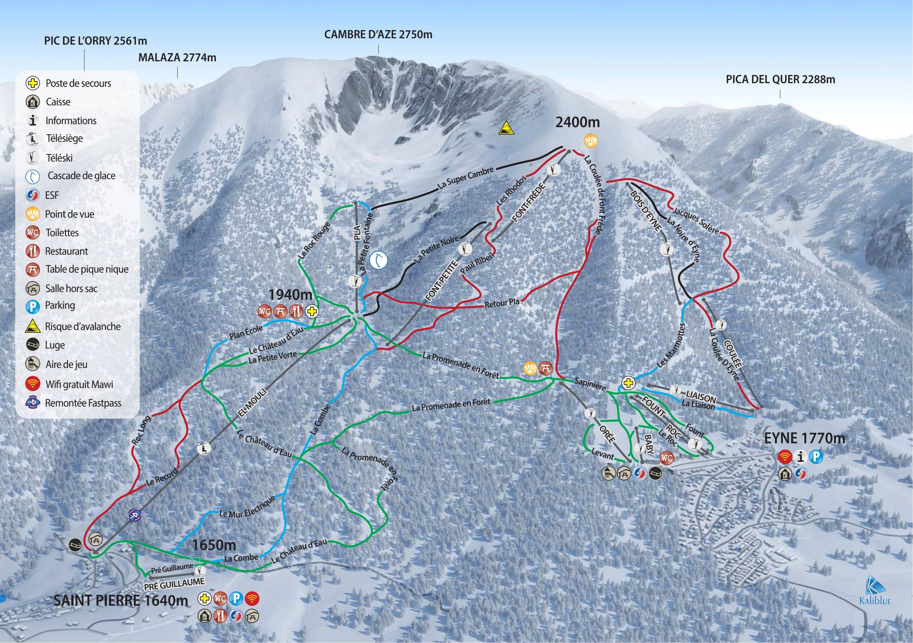 Plan des pistes Cambre d'Aze – Eyne/Saint-Pierre-dels-Forcats Saison 2024/2025