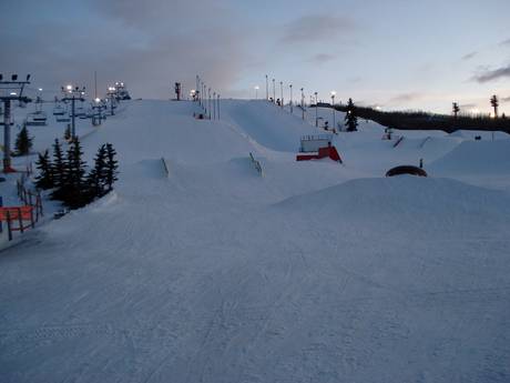 Presque toute la "Ski Hill" est équipée de snowparks et d'un grand halfpipe. Un paradis pour les freestylers.