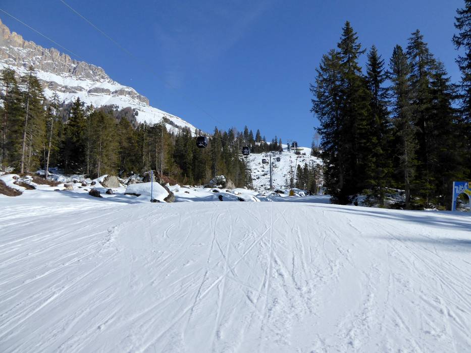 D'abord noire puis rouge le long de la télécabine 10 places König Laurin - Piste n° 30 Tschein