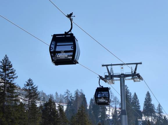 Les autres pistes du domaine skiable de Carezza, entre König Laurin et le col de Karer, sont desservies par des télésièges et télécabines modernes. Pour les débutants, il existe plusieurs tapis roulants et téléskis à assiettes. D'autres tapis roulants des écoles de ski locales complètent l'offre. Depuis St. Zyprian, dans la commune de Tiers, le téléphérique cabriolet de Tiers monte jusqu'à l’alpage Frommer. Cependant, il n’existe pas de piste descendant jusqu’à St. Zyprian.