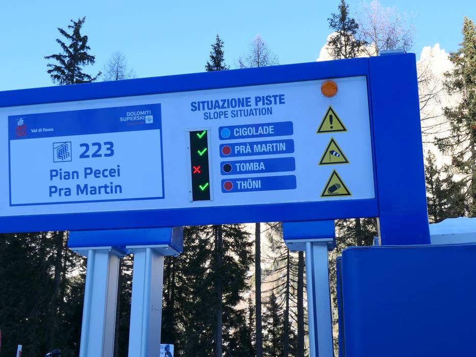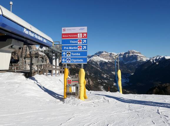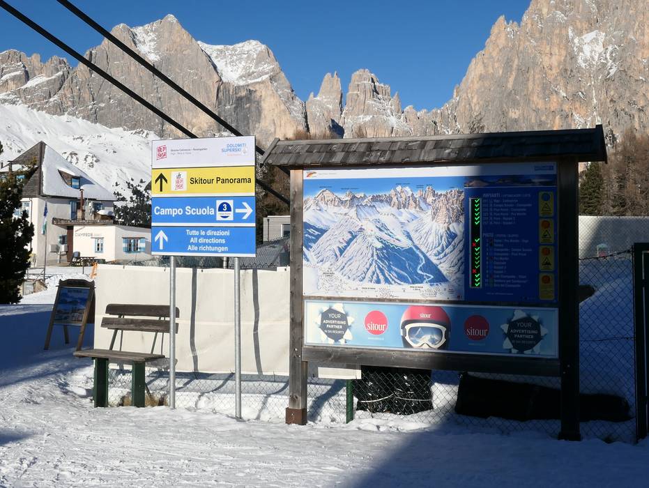 Indications de directions (plans, panneaux informatifs, signalisation) et sécurité sur le domaine skiable Catinaccio/Ciampedie – Vigo di Fassa/Pera di Fassa