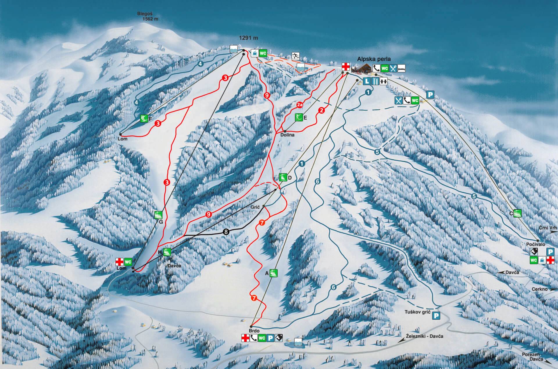 Gorenji Novaki (2,1 km), Dolenji Novaki (3,4 km), Cerkno (11 km) Communes près du domaine skiable