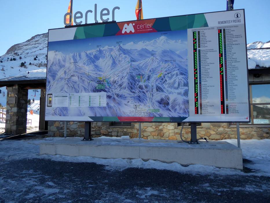 Aux points d'accès de Cerler et Ampriu, de grands panneaux d'information avec le plan des pistes et des informations actualisées chaque jour sont à disposition. Dans le domaine skiable, on trouve également des plans des pistes. Toutes les pistes sont bien signalées et très bien balisées. Ainsi, même en cas de mauvaise visibilité ou de brouillard, il est toujours facile de s'orienter.