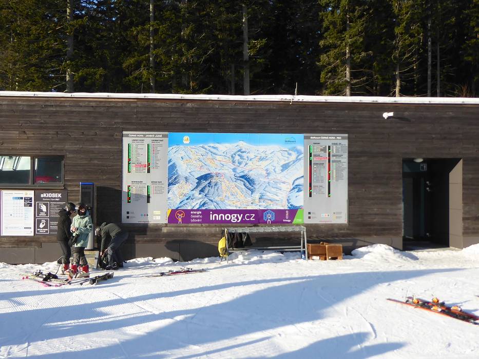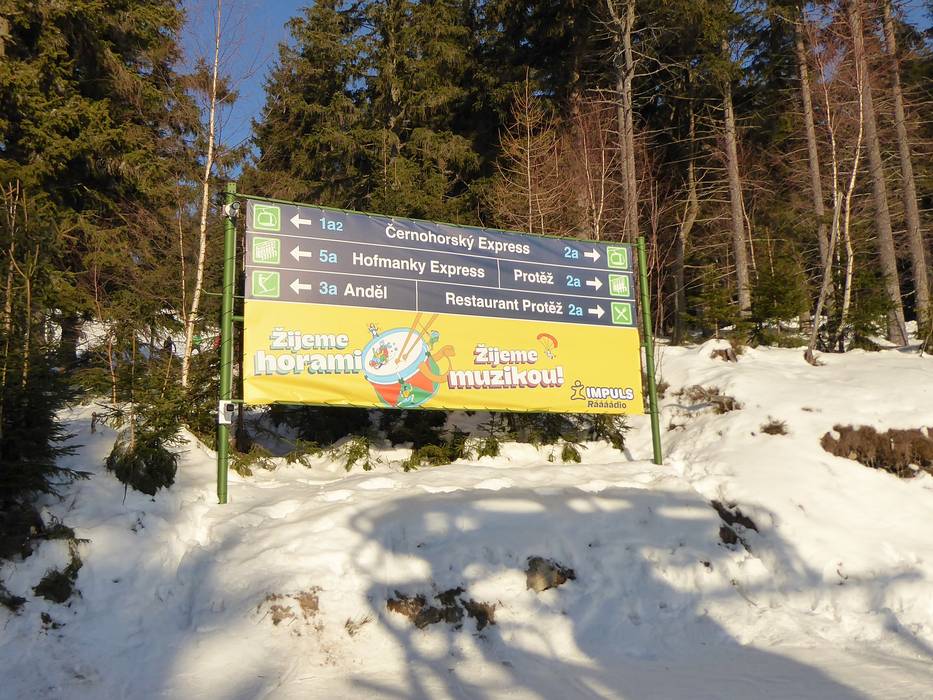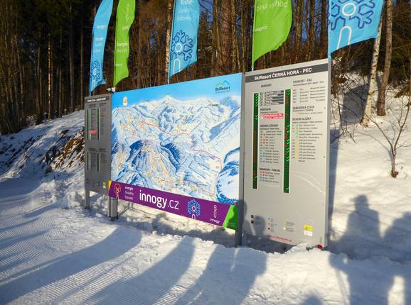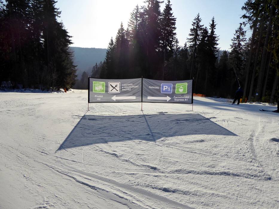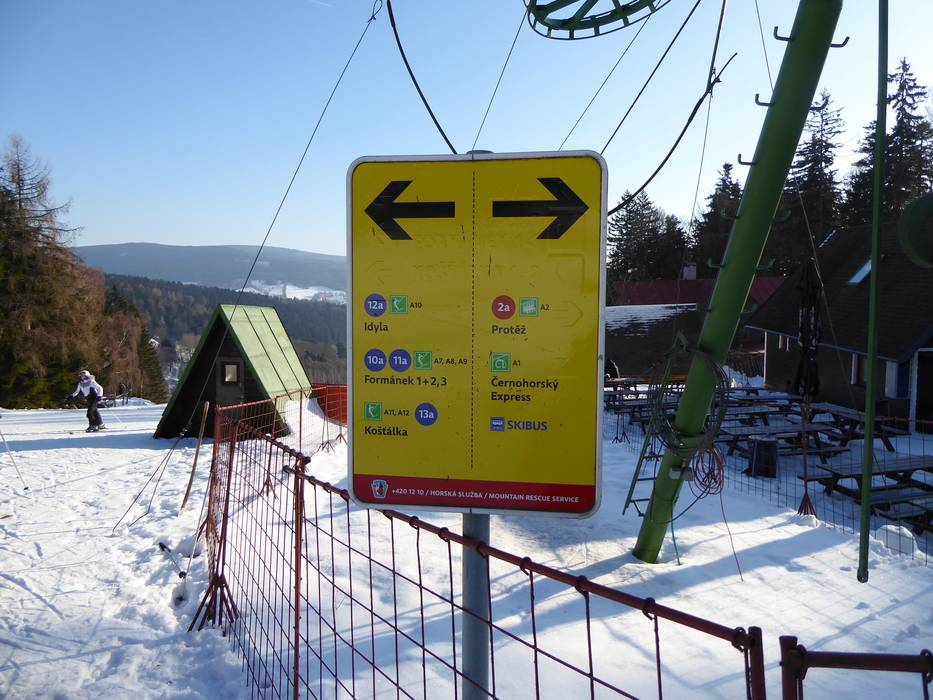 Indications de directions (plans, panneaux informatifs, signalisation) et sécurité sur le domaine skiable Černá hora – Janské Lázně