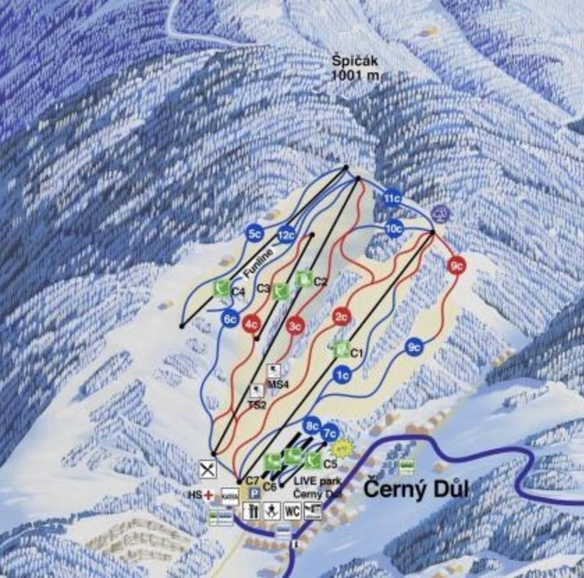 Plan des pistes Černá hora/Pec pod Sněžkou/Černý Důl/Velká Úpa/Svoboda nad Úpou/Malá Úpa Saison 2024/2025