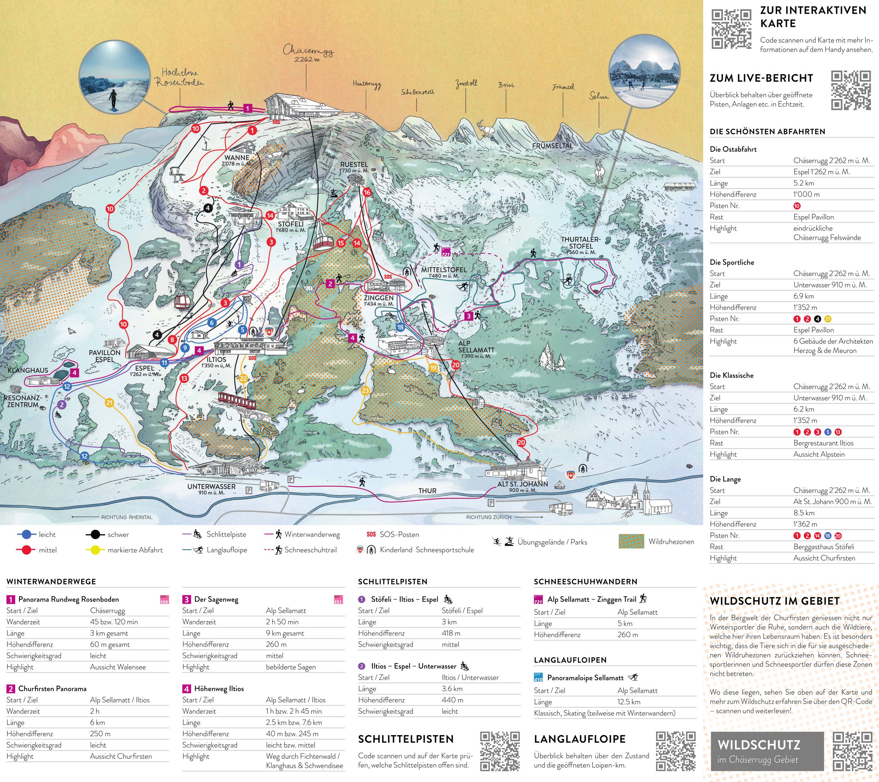 Plan des pistes Chäserrugg – Unterwasser/Alt St. Johann (Toggenburg) Saison 2025/2026