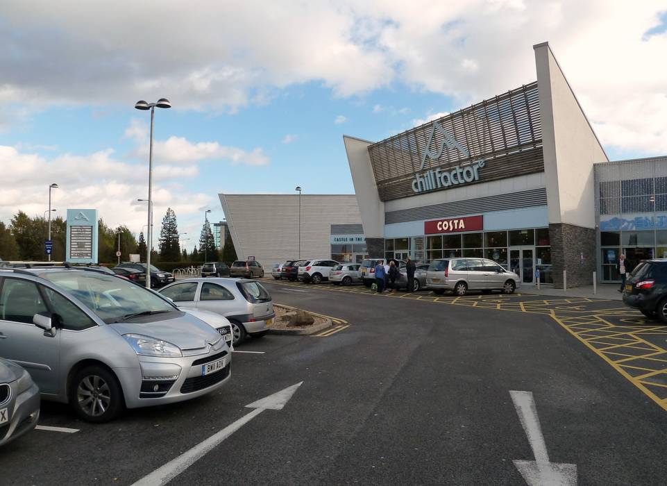 La station de ski intérieure Chill Factore est idéalement située près de l'autoroute. Malheureusement, les parkings sont souvent complets et, surtout le week-end et aux heures de forte affluence, il n'est pas facile de trouver une place de stationnement immédiatement.