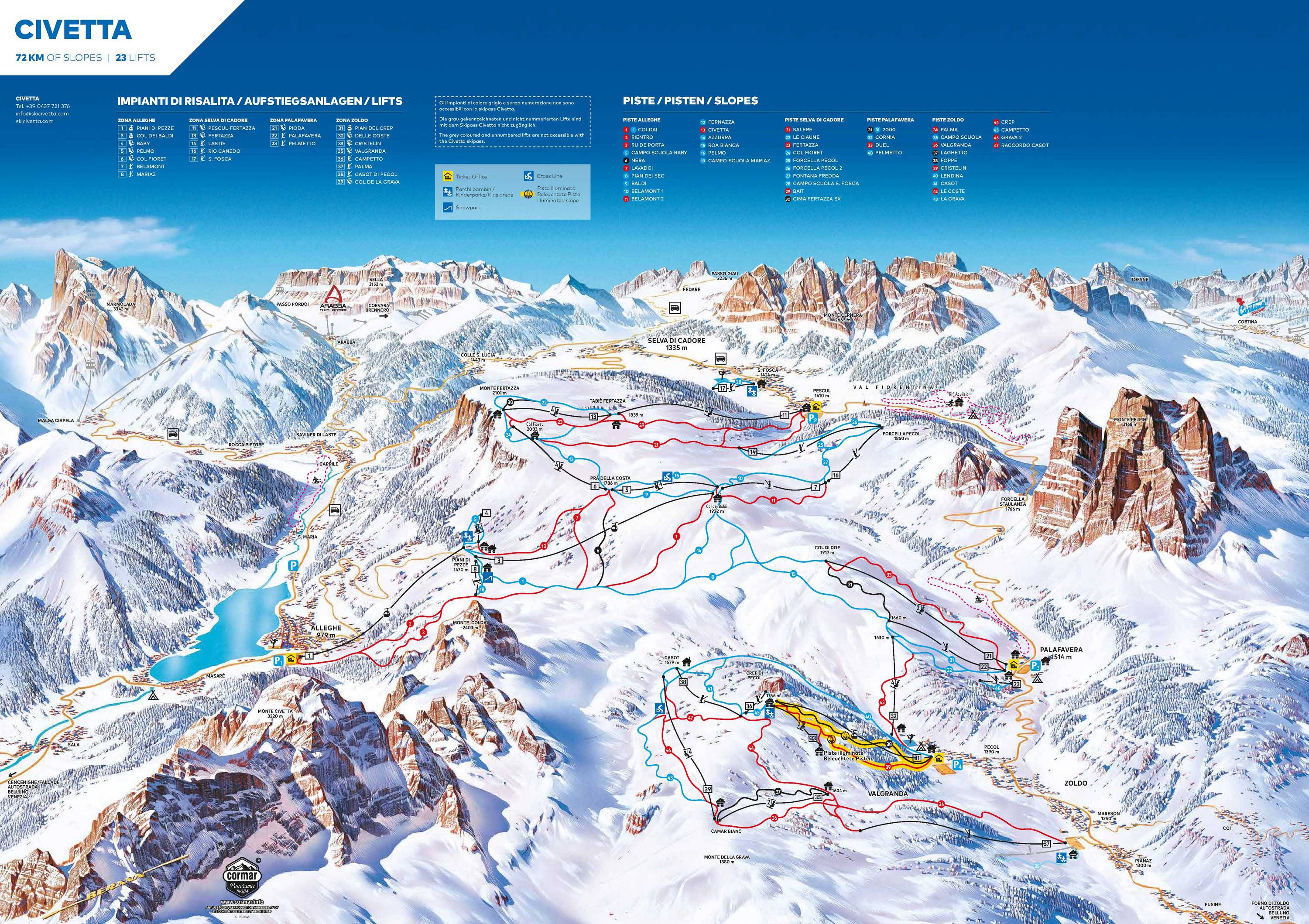 Plan des pistes Civetta – Alleghe/Selva di Cadore/Palafavera/Zoldo Saison 2025/2026