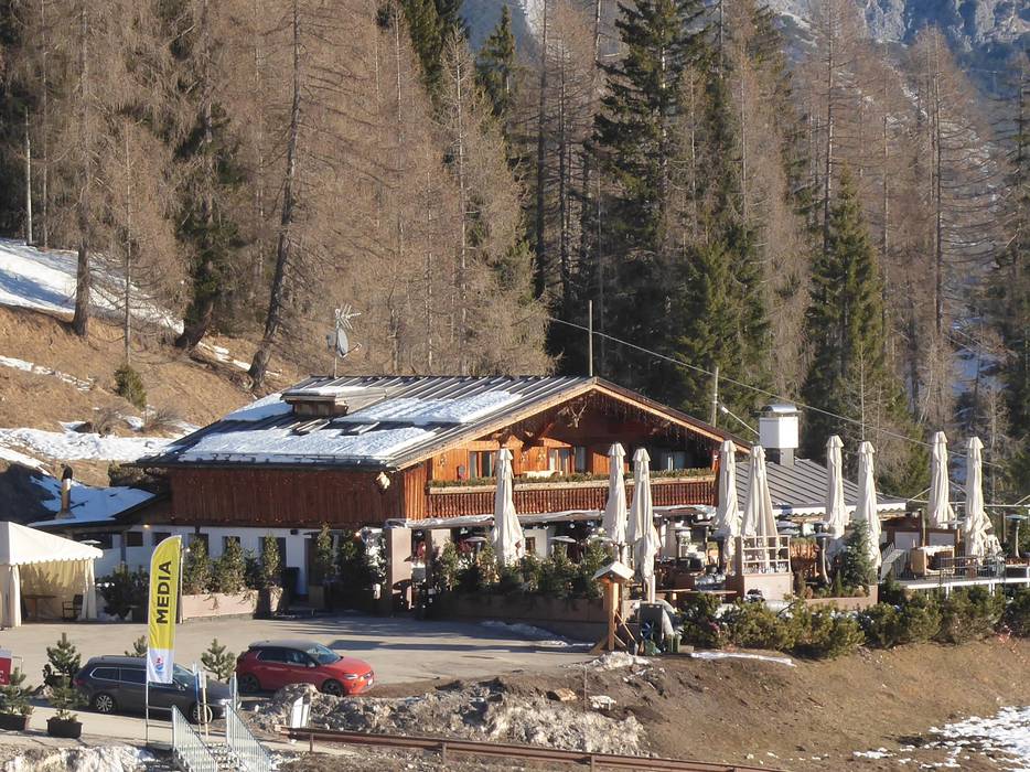 Au départ de la piste Olympiapiste, la cabane propose des spécialités régionales typiques et une grande terrasse ensoleillée. La vue magnifique sur les Dolomites est incluse.