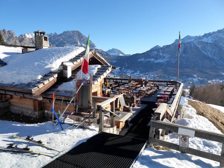 Des refuges de ski confortables et exclusifs sont répartis dans tout le domaine skiable de Cortina d'Ampezzo. L'ambiance est typiquement italienne et de nombreux refuges proposent des vins et des plats de grande qualité. La vue depuis les terrasses ensoleillées sur les Dolomites est à couper le souffle.