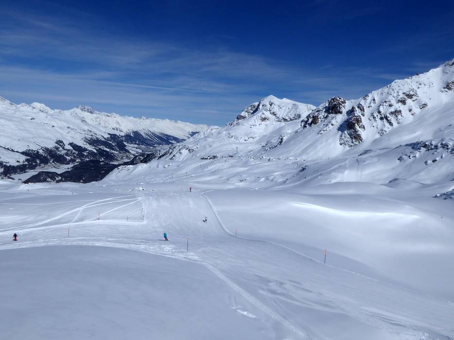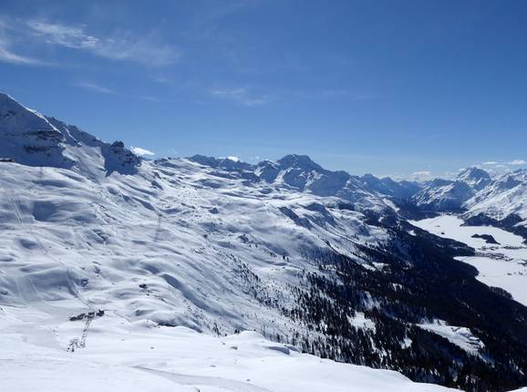 Le domaine skiable de la région hivernale Engadin St. Moritz est vaste et les pistes s’étendent autour de Corvatsch et Furtschellas. La station supérieure du Corvatsch culmine à 3303 mètres d’altitude. Il s’agit de la station de montagne la plus haute des Grisons et elle offre un panorama unique. Le domaine skiable s’étend sur les villages de Sils im Engadin/Segl, Surlej (Silvaplana) et St. Moritz. Une descente mène jusqu’à St. Moritz-Bad, mais aucun téléski ne démarre à cet endroit. Des skibus relient ce point à la station inférieure du Corvatsch à Surlej.