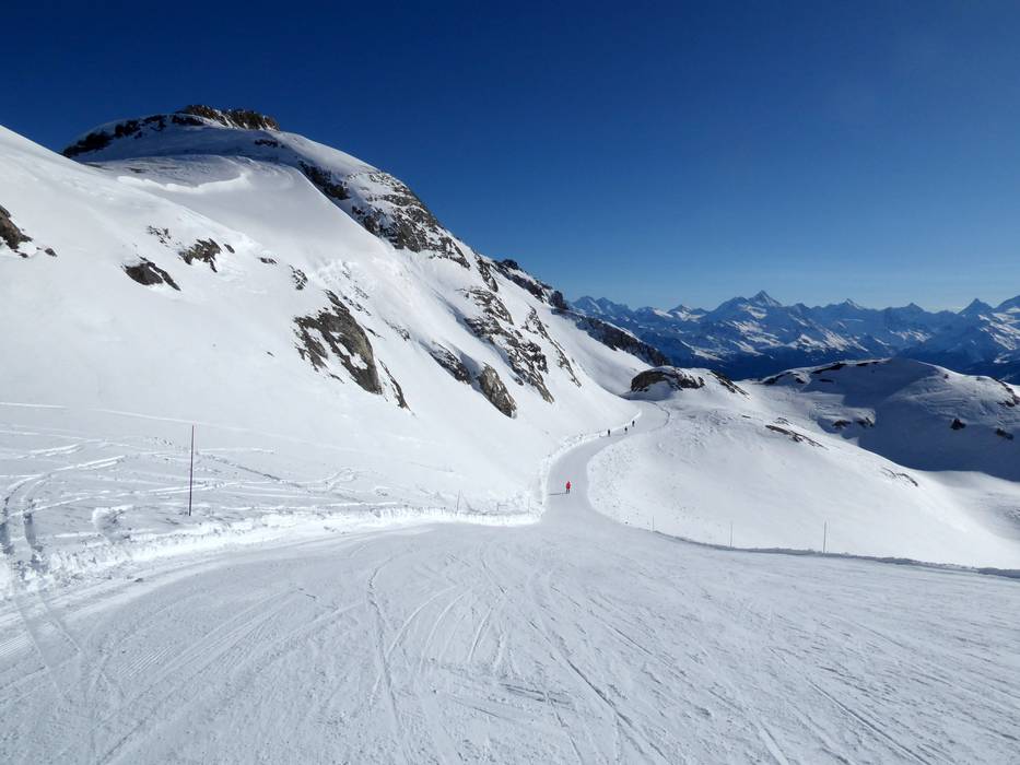Crans-Montana propose principalement des pistes faciles et de difficulté moyenne. Les descentes se trouvent sur un plateau ensoleillé, surplombant la vallée du Rhône. À noter les pistes homologuées par la Fédération Internationale de Ski (FIS), la piste du glacier Plaine-Morte et le magnifique panorama au Bellalui.