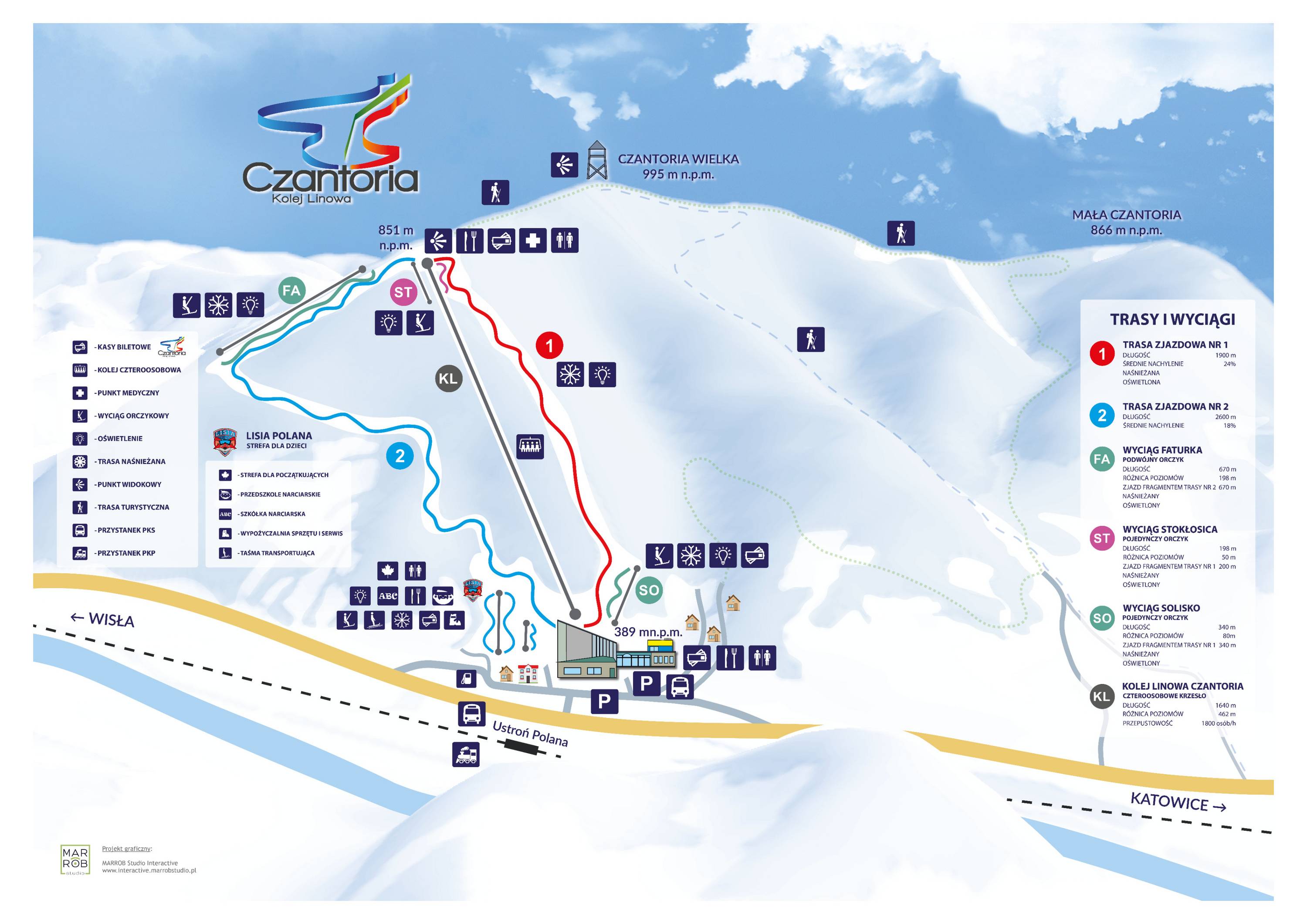 Plan des pistes Czantoria – Ustroń Saison 2024/2025