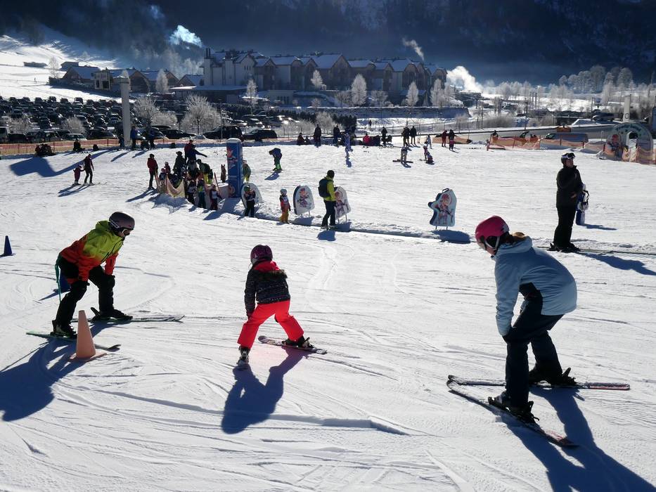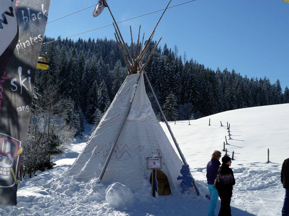 Le snowpark est un plaisir pour toute la famille. Situé en plein soleil, les obstacles et les sauts sont adaptés aux familles.