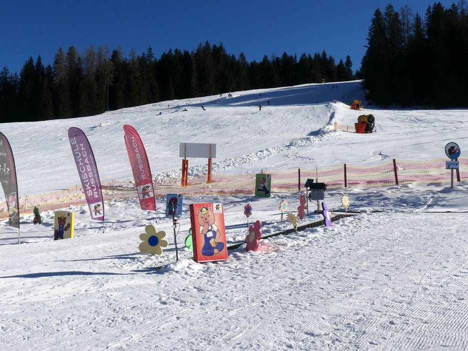 Le Bärencamp se trouve à proximité de la station inférieure du Russbacher Hornbahn. Sur la Bärenwiese, avec son tapis magique et ses téléskis à assiettes, l'apprentissage du ski devient facile. Bruno l’ours skieur rend également visite aux enfants de temps en temps et fait un tour à ski avec eux.