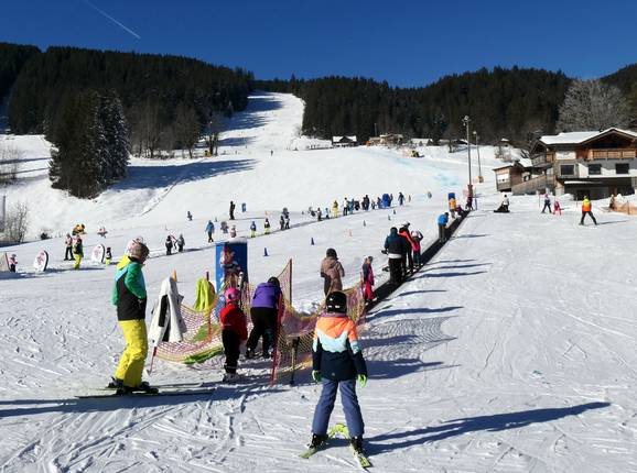 Au Fredy-Land, situé directement à la station inférieure du Hornspitzbahn à Gosau, les enfants se sentent très bien. C'est le plus grand espace enfants de la région de ski Dachstein West et il propose des tapis roulants, des slaloms et de nombreux personnages amusants.