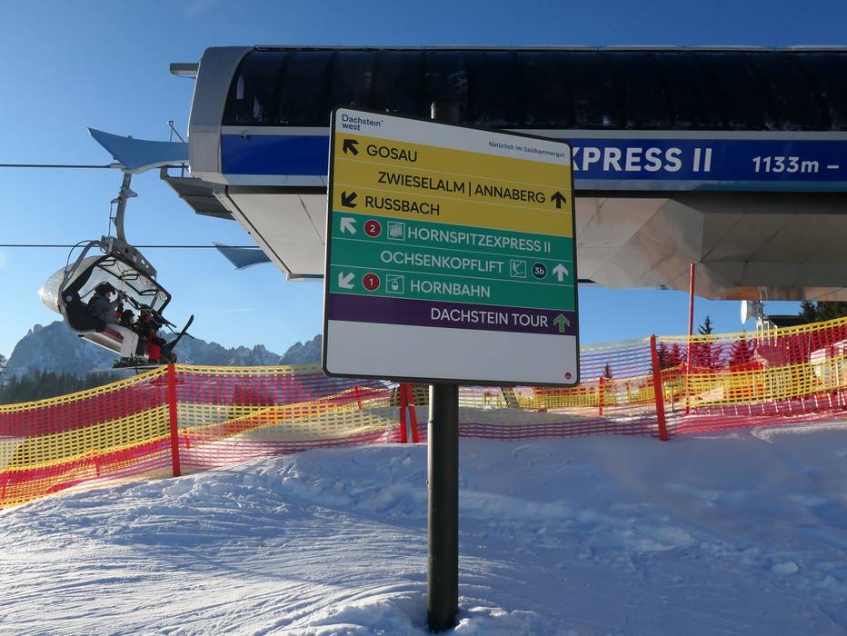 Indications de directions (plans, panneaux informatifs, signalisation) et sécurité sur le domaine skiable Dachstein West – Gosau/Russbach/Annaberg