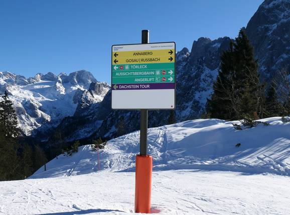 Aux stations de vallée, vous trouverez des informations actualisées sur l’état des installations. La plupart des pistes sont bien signalées. Il est généralement très facile de s’orienter dans le domaine skiable. Le circuit de ski "Dachstein Tour" est balisé.