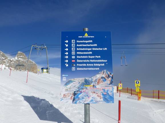 Indications de directions (plans, panneaux informatifs, signalisation) et sécurité sur le domaine skiable Dachsteingletscher (Glacier du Dachstein)
