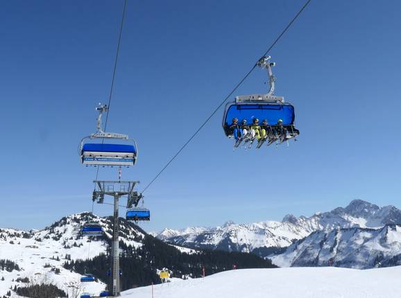 6 places | Télésiège rapide (débrayable) avec capots de protection et sièges chauffants Longueur : 1119 m · Capacité de transport/h : 2400 Fabricant: Doppelmayr Infos