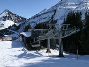 La station aval du télésiège 6 places Oberdamüls se trouve quant à elle toujours au même endroit, afin de continuer à utiliser l’infrastructure existante. Pour éviter des travaux de construction supplémentaires, les sièges sont garés dans les stations du télésiège.