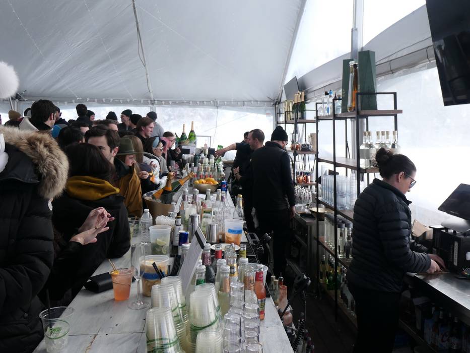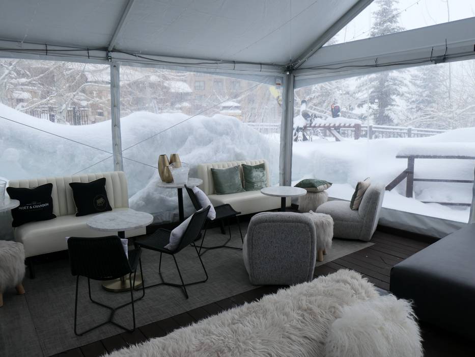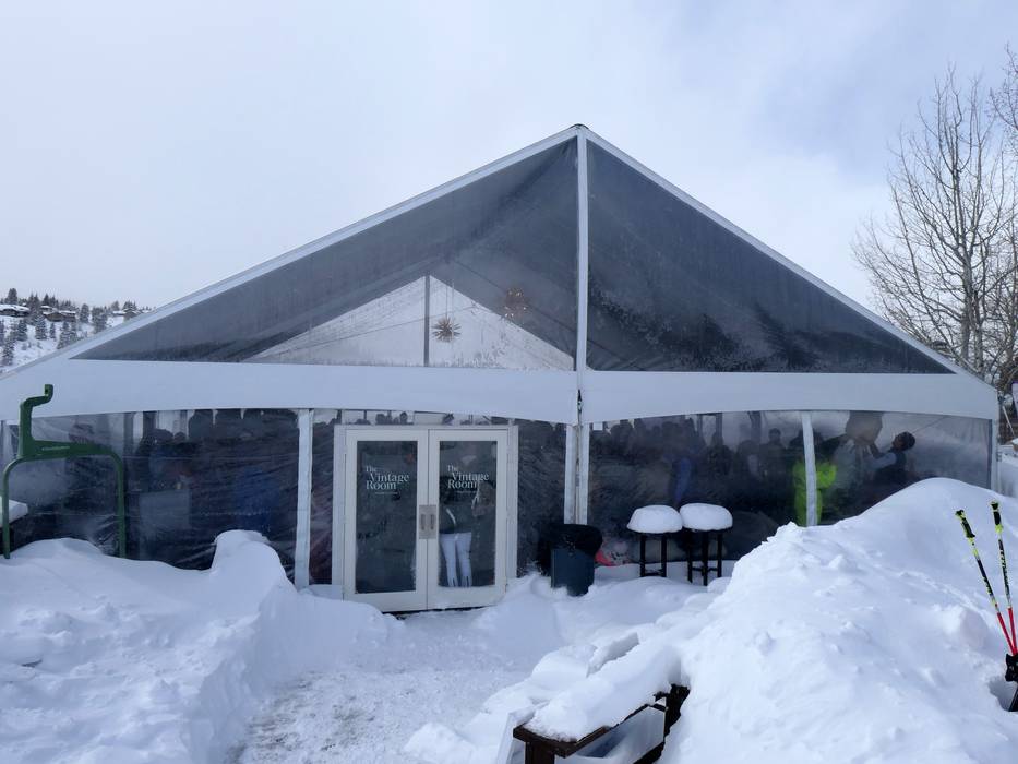 The Vintage Room est un lounge après-ski. Le bâtiment chauffé, de type tente, est situé directement au bord des pistes. Ici, on fête avec du champagne et de la bonne musique.