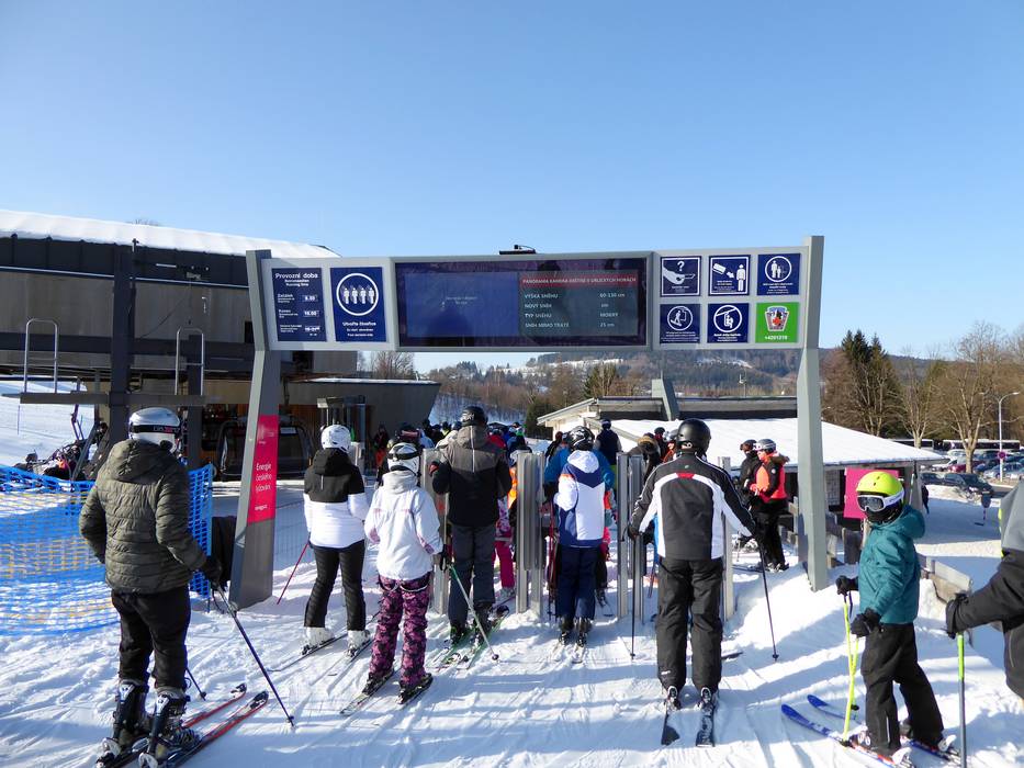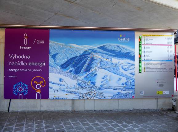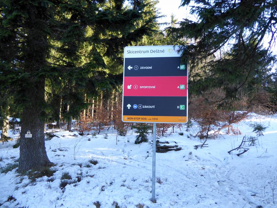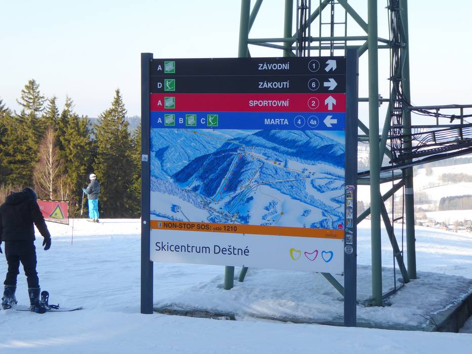 Indications de directions (plans, panneaux informatifs, signalisation) et sécurité sur le domaine skiable Deštné