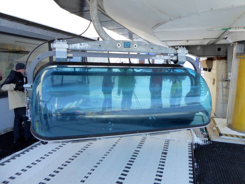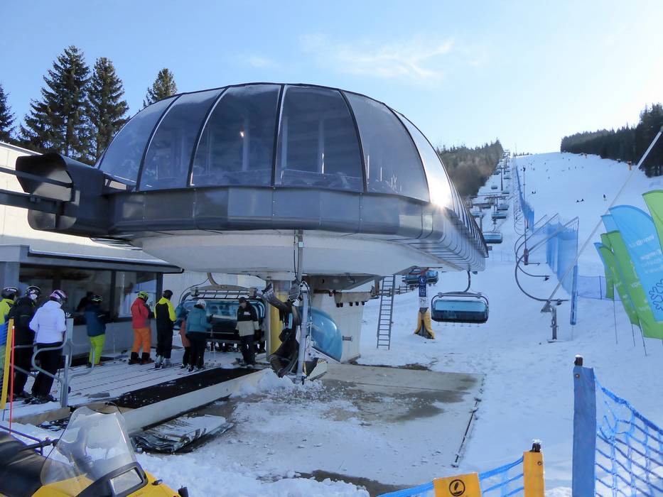 Le télésiège 6 places Kikirikiii était auparavant en service sous le nom de télésiège 6 places Plateau au Kronplatz en Tyrol du Sud.