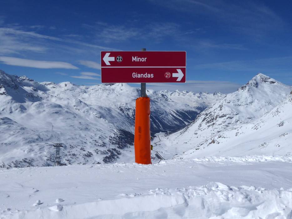 Aux stations de vallée et de montagne, des panneaux d'information indiquent l'état actuel des pistes et des remontées mécaniques ainsi que le niveau de risque d'avalanche. La signalisation sur les pistes est excellente. La descente du glacier Morteratsch est clairement balisée.