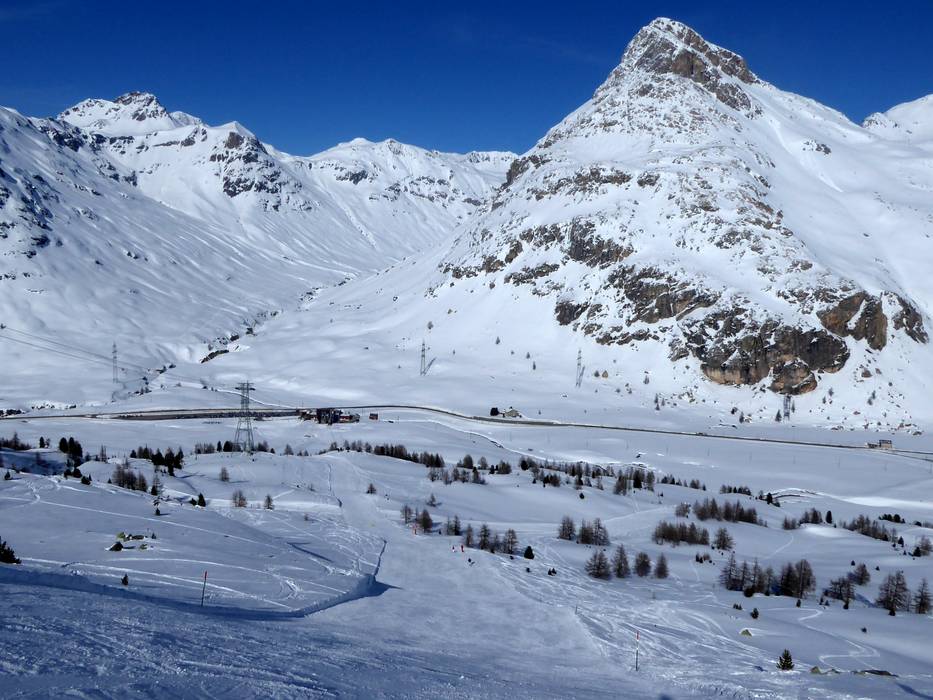 Les descentes vers la vallée mènent aux téléphériques Diavolezza et Lagalb.