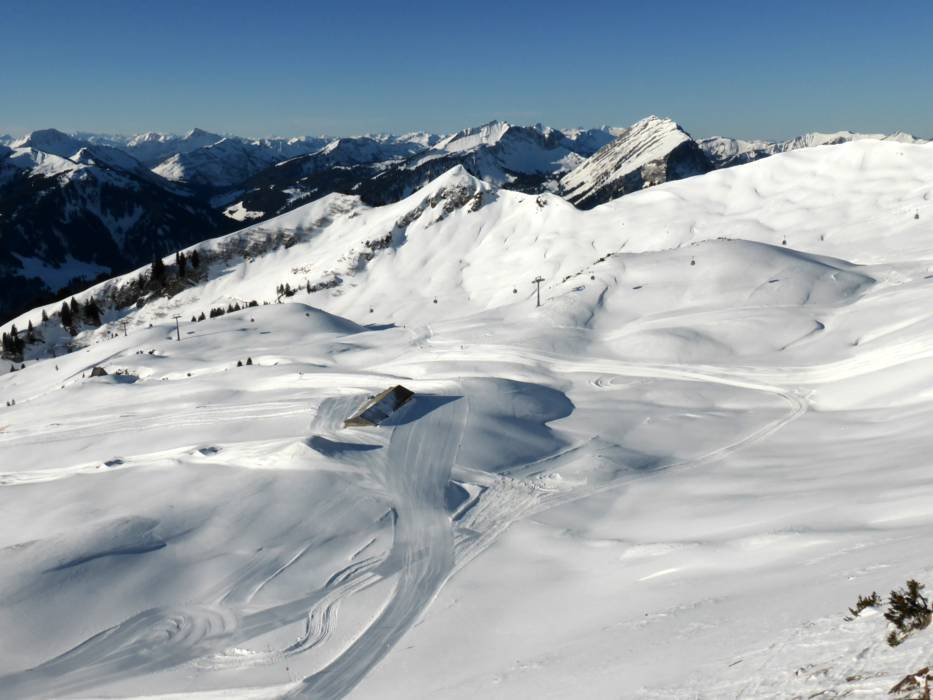 Vue sur le domaine skiable du Diedamskopf Terrain à forte pente au Diedamskopf Vue depuis la gare amont du Diedamskopf
