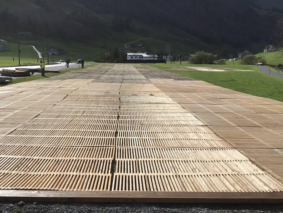 Davantage de places de parking pour voitures sur sol stabilisé sont désormais disponibles. La zone de stationnement à Schwende (téléski Horn) a été agrandie grâce à un système de caillebotis en bois écologique de grande valeur.Élargissement de la piste Téléski Chlus