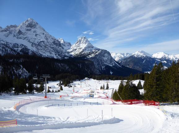 Le domaine skiable Ehrwalder Alm – Ehrwald se situe dans la Tiroler Zugspitz Arena (Autriche, Tyrol, Ausserfern).
