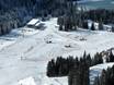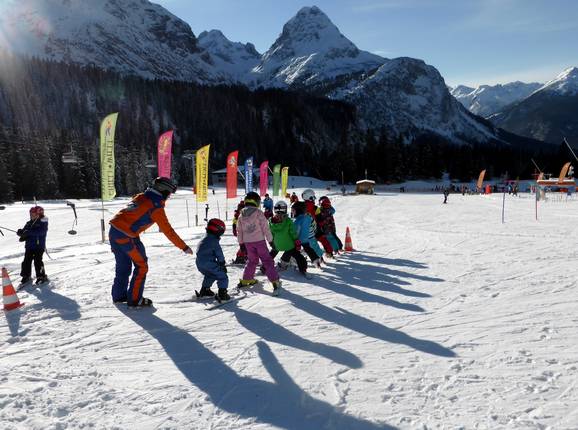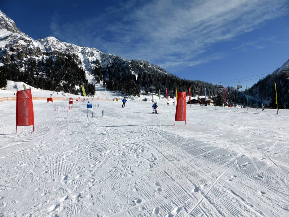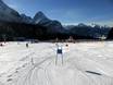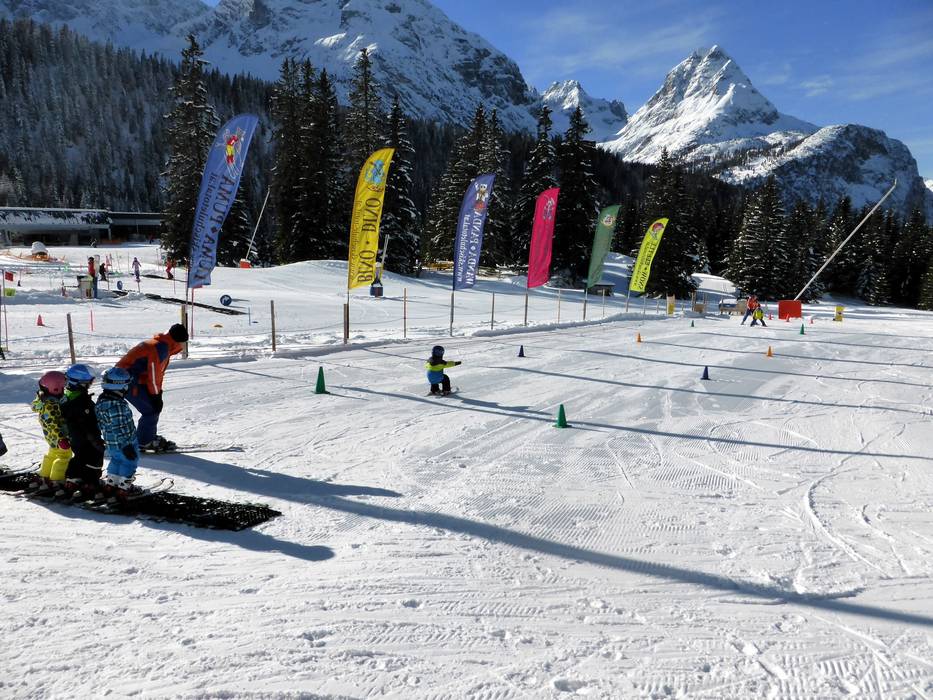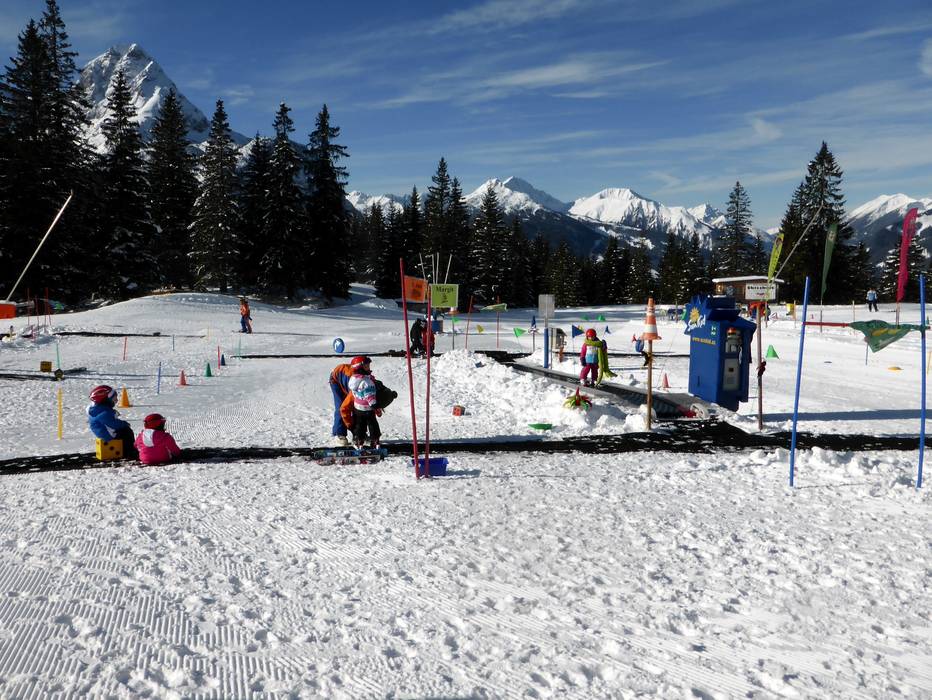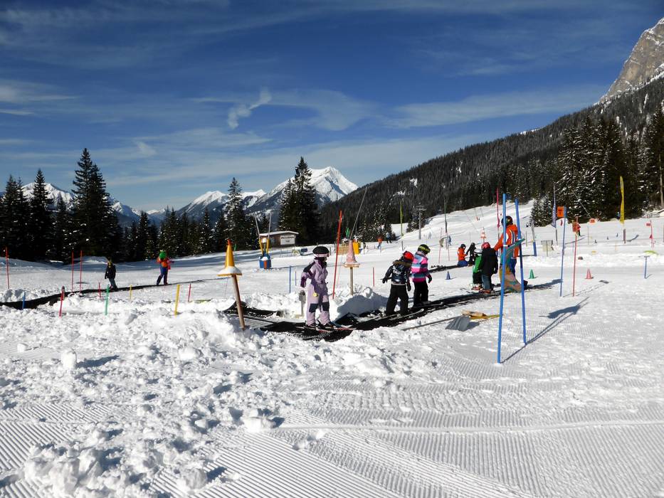 Espace dédié avec téléski sur l’Ehrwalder Alm. Ici, les parents peuvent monter en télécabine sur la montagne, même s’ils ne skient pas, et regarder leurs enfants faire leurs premiers virages.