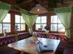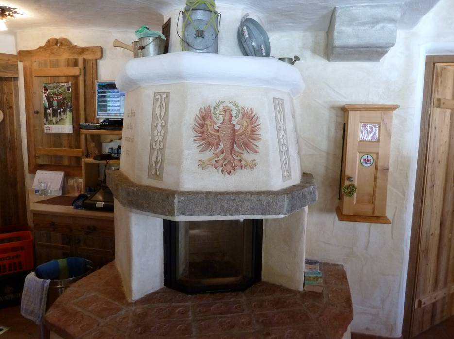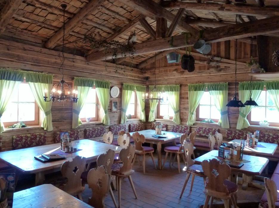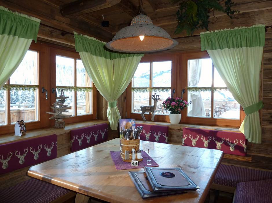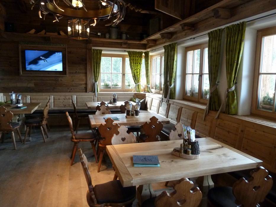 Chalet confortable avec poêle en faïence, cheminée ouverte, bar et coins salons accueillants. Des spécialités tyroliennes faites maison y sont servies.