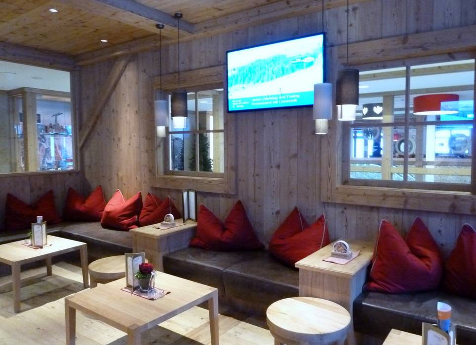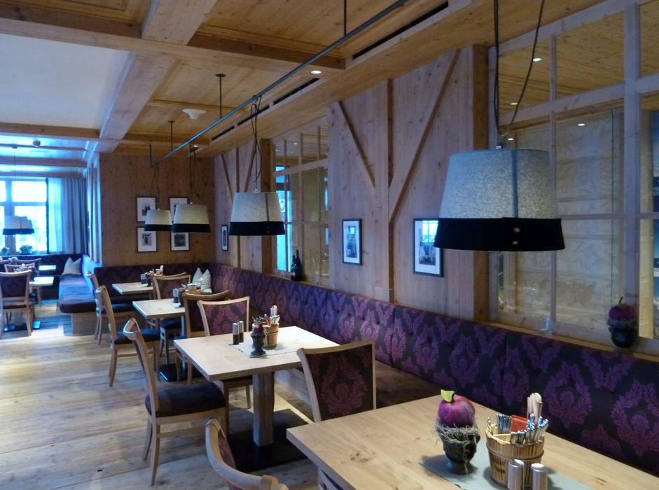La nouvelle perle de l’Ehrwalder Alm. Au restaurant avec service à table Tuxer Stube, des délices culinaires et des vins raffinés sont servis. Au restaurant FreeFlow (self-service), vous pourrez déguster la cuisine typique du Tyrol. Le Adlerbar invite à passer un moment convivial ensemble. Tout est construit en bois de haute qualité dans un style alpin. Plusieurs cheminées ouvertes créent une ambiance typiquement alpine. Les toilettes sont facilement accessibles par escalator.