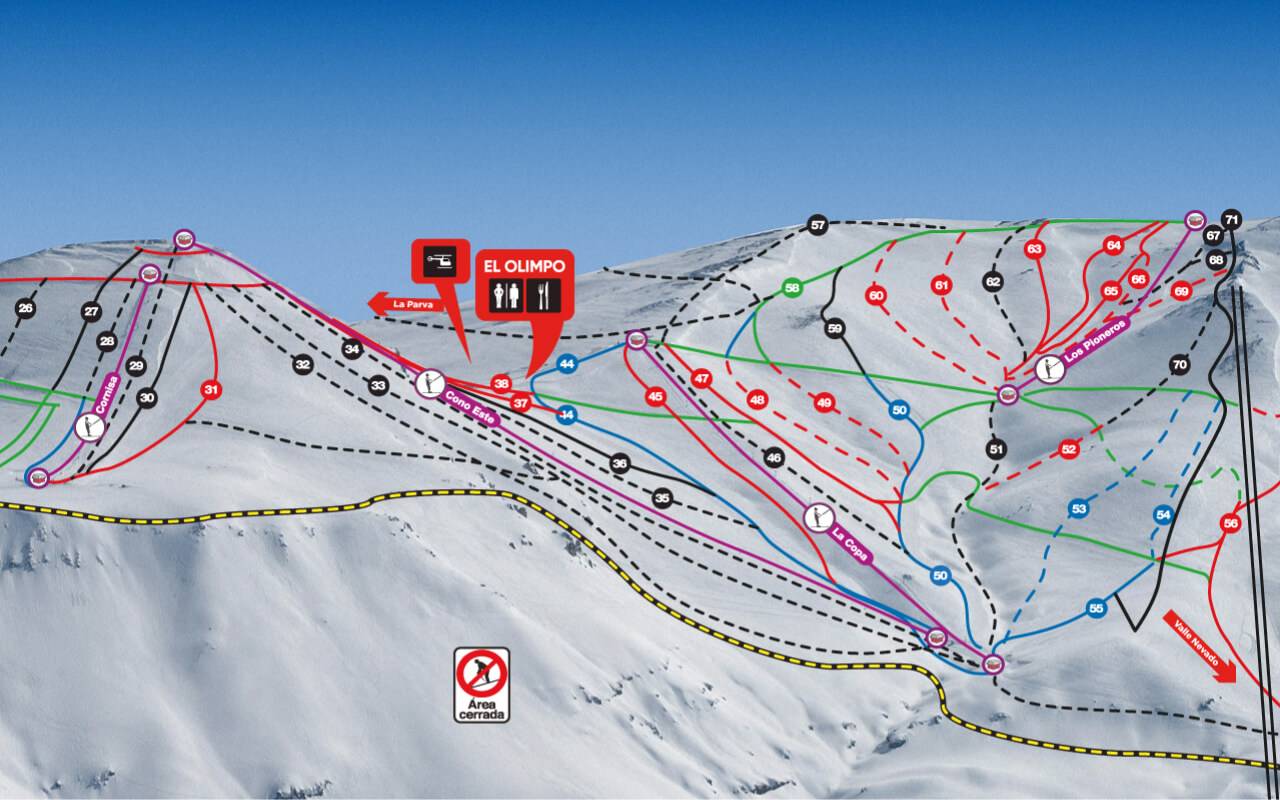 El Colorado (0,1 km), Farellones (0,6 km), La Parva (3,1 km), Communes près du domaine skiable