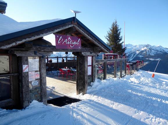 Le restaurant d’altitude propose un délicieux choix de spécialités locales, notamment des fromages de Savoie et des plats de viande. Les classiques de la cuisine alpine française, comme la tartiflette, figurent également au menu. Depuis la terrasse ensoleillée, on profite d’une vue magnifique sur les montagnes environnantes.