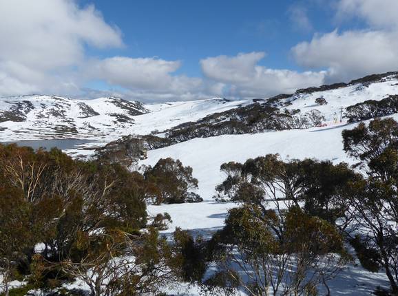 Falls Creek est le plus grand domaine skiable du Victoria. Il s'étend à l'arrière de la montagne, du Ruined Castle jusqu'au Drover's Dream. Sur le versant avant, on peut descendre du Village à travers la Village Bowl jusqu'au Summit.