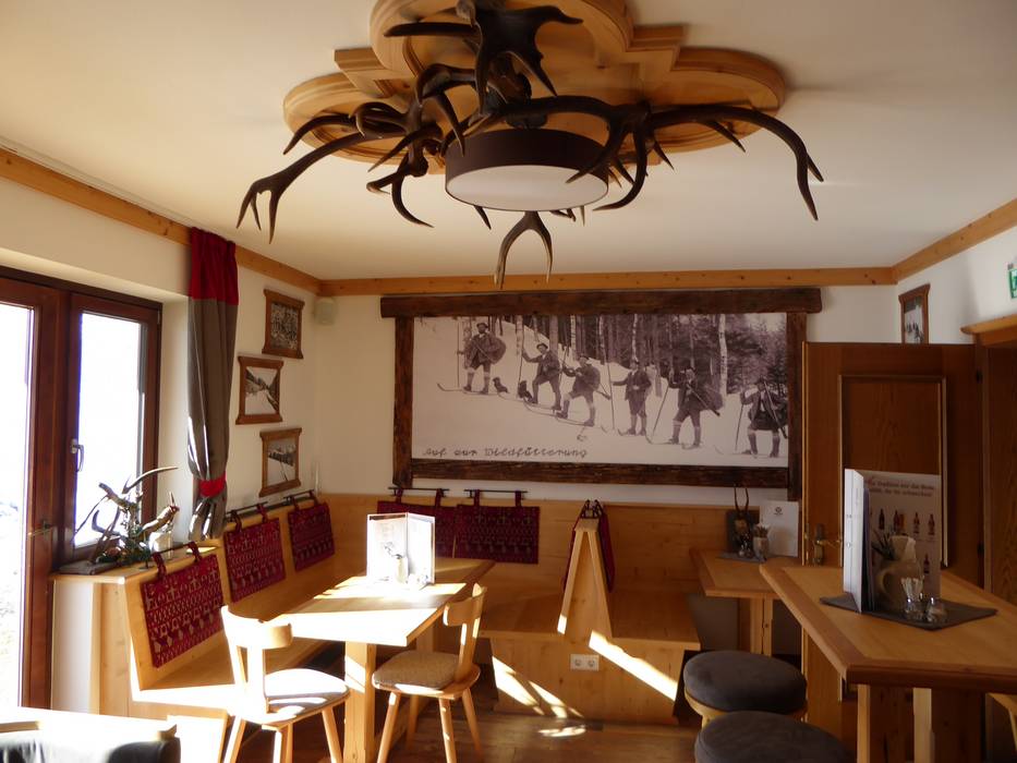 Le Zirberl a été construit en pin cembro local. Des espaces confortables et spacieux, associés au parfum du bois de pin cembro, créent une atmosphère chaleureuse. Des spécialités régionales et des produits issus de la propre ferme sont servis. Les rennes derrière la cabane de ski peuvent être nourris.