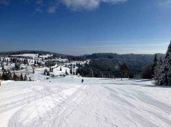 Juste en dessous du Feldberg, entre Seebuck et Grafenmatt, se trouve le plus grand domaine skiable relié de la Forêt-Noire. Depuis le point culminant à 1 448 m, les visiteurs profitent d’une vue magnifique sur la Forêt-Noire et, avec un peu de chance, jusqu’aux Alpes. Pentes douces, descentes tranquilles à travers la forêt, itinéraires freeride, une piste de Coupe du monde FIS et un grand snowpark dans un superbe paysage forestier – au Feldberg, chacun trouve son bonheur sur les pistes.