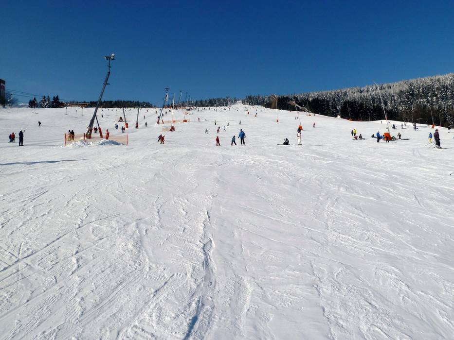 Des pistes faciles descendent de la montagne jusqu'à la vallée. Les meilleures descentes pour les débutants se trouvent aux téléskis du Kleiner Fichelberg et au téléski Himmelsleiter. Un espace d'entraînement est disponible dans la station d'Oberwiesenthal.