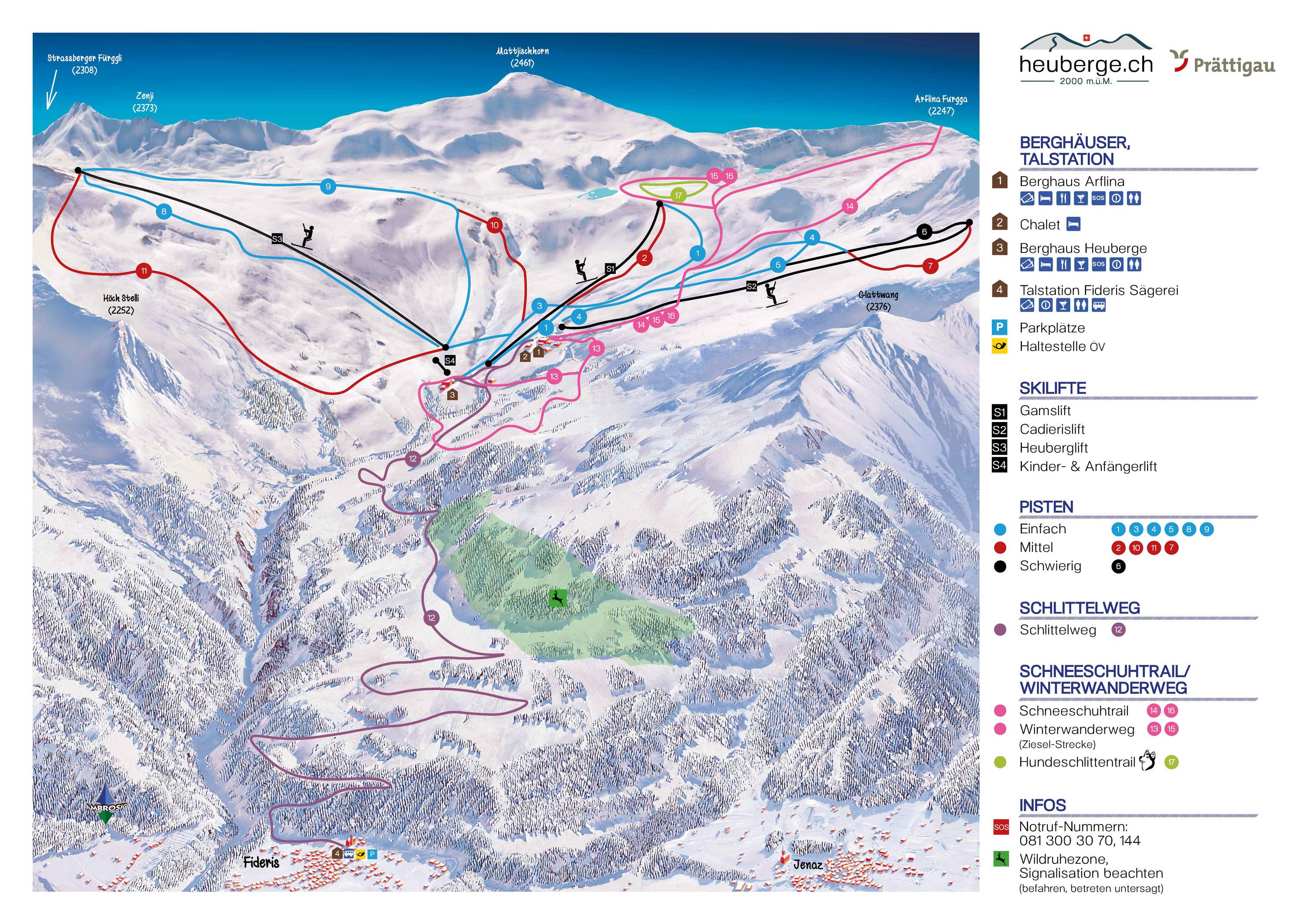 Plan des pistes Fideriser Heuberge Saison 2024/2025